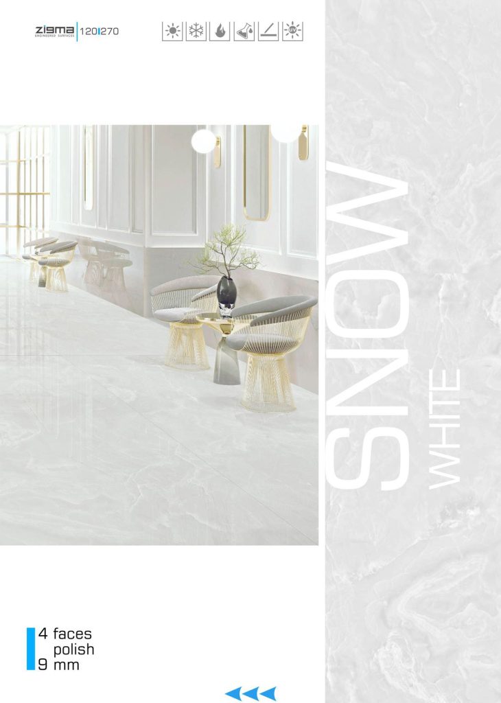 اسلب سرامیک رنگ روشن Snow White 120*270