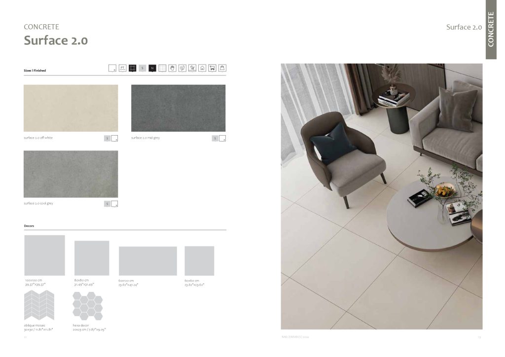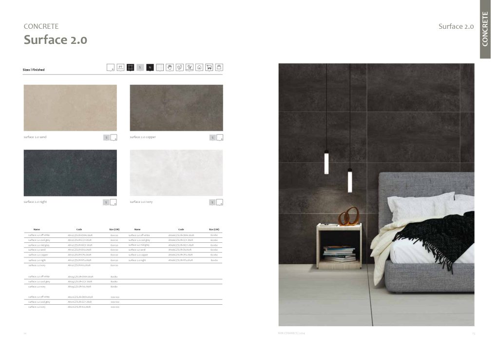 سرامیک طوسی مات 60 در 120 برند راک سرامیک را با نام سورفیس کوپر میشناسند. سرامیک طوسی روشن مات با جلوهی سنگ طبیعی، سطحی چشمنواز پیش روی شما میگذارد. سرامیک پرسلان با جذب آب صفر، امکان استفاده در مناطق مرطوب را به شما خواهد داد. رنگ طوسی روشن این امکان را به شما میدهد که در عین حال که از مزیت دکوراسیون مدرن استفاده میکنیم و ریسک سرامیک کف تیره را قبول میکنید، رنگ تیره سرامیک تا حدی نباشد که بخش زیادی از نور فضا کاسته شود. سرامیک لعابدار است و از نوع مات که دوام مناسبی خواهد داشت و طی زمان طولانی تغییر رنگ نخواهد داد.